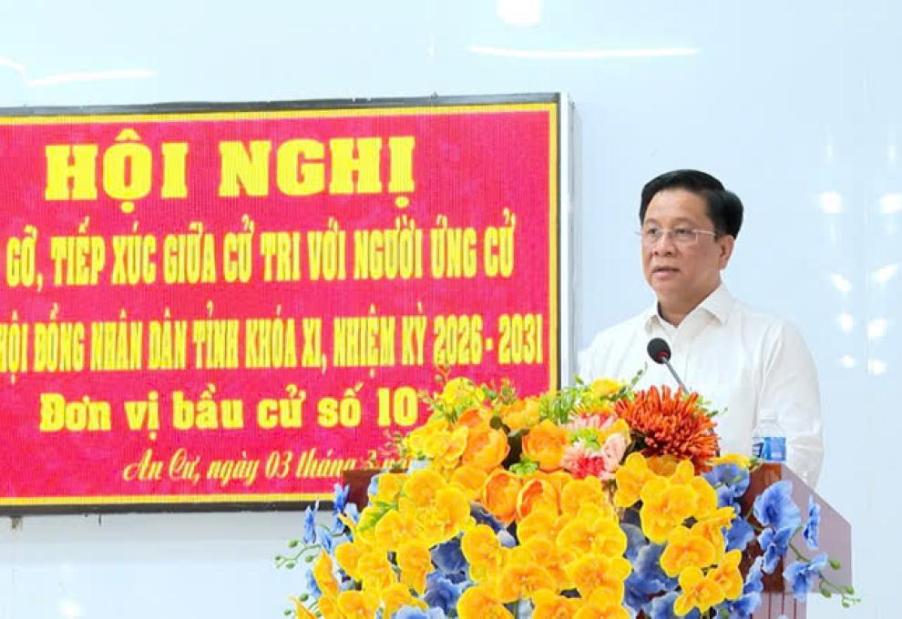 Sáng ngày 3/3/2026, các ứng cử viên đại biểu HĐND tỉnh An Giang khóa XI, nhiệm kỳ 2026-2031, đơn vị bầu cử số 10, đã có buổi tiếp xúc, gặp gỡ cử tri tại xã An Cư.