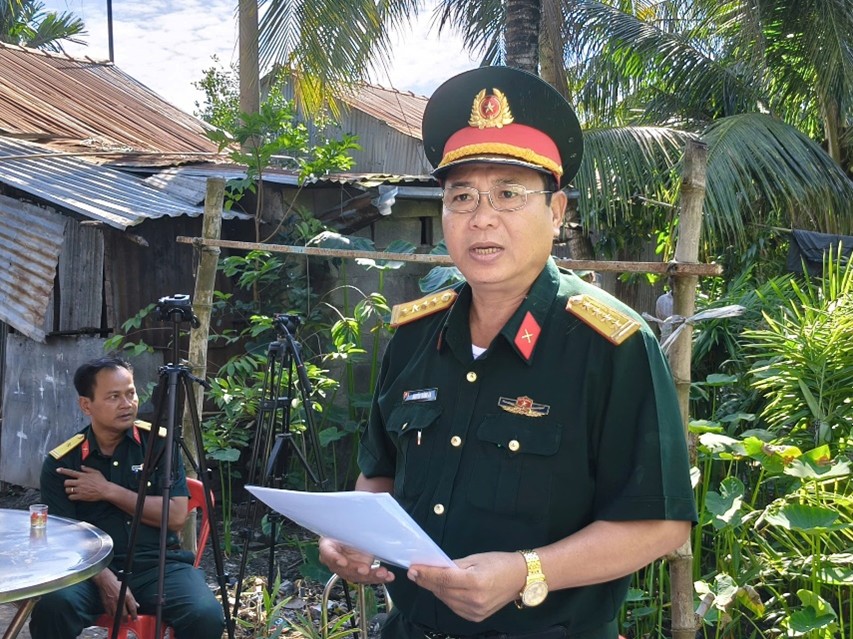 Đại tá Nguyễn Thành An, Phó Chỉ huy trưởng Bộ Chỉ huy Quân sự Tỉnh phát biểu và chúc mừng gia đình ông Chau Sin