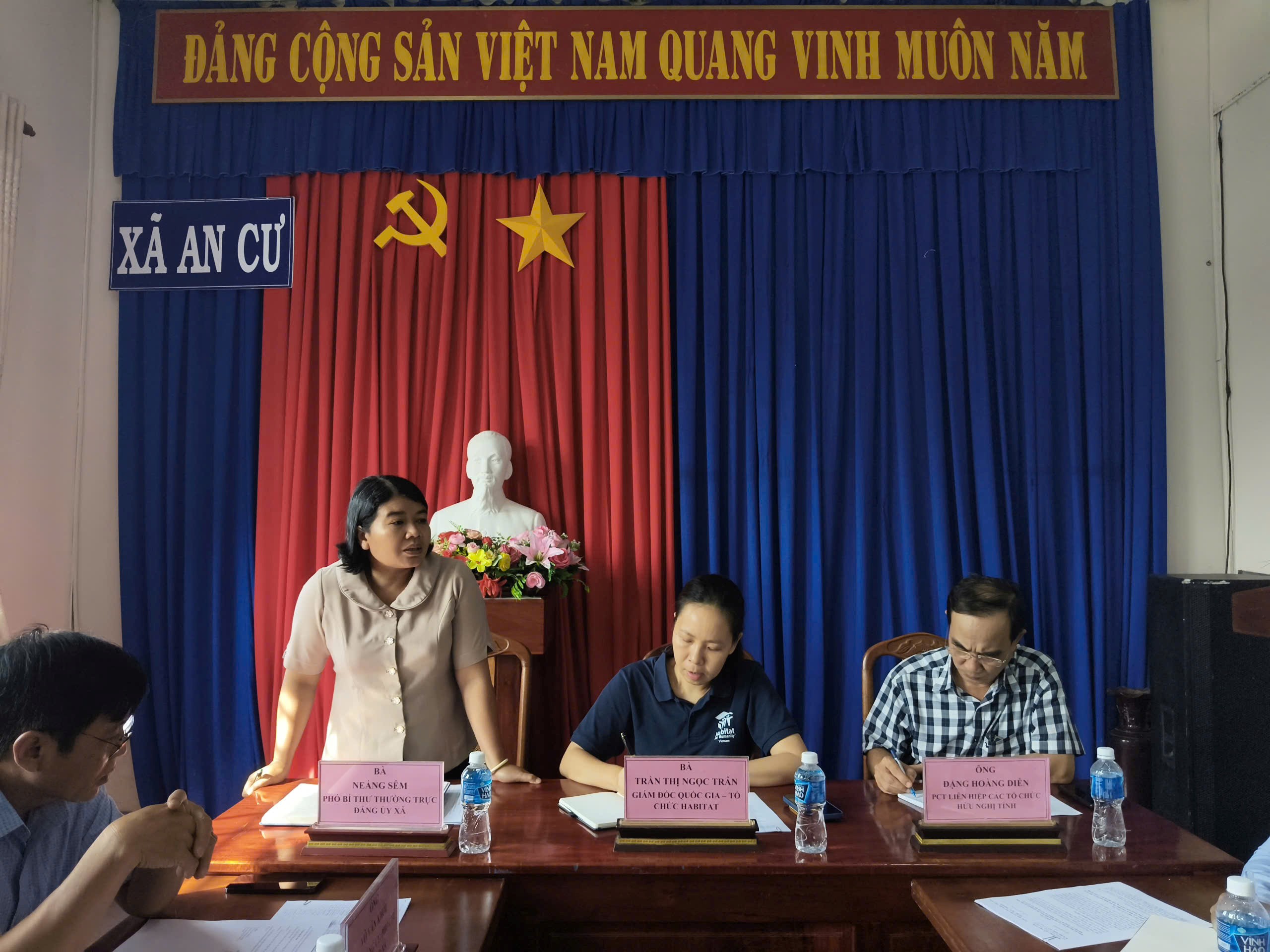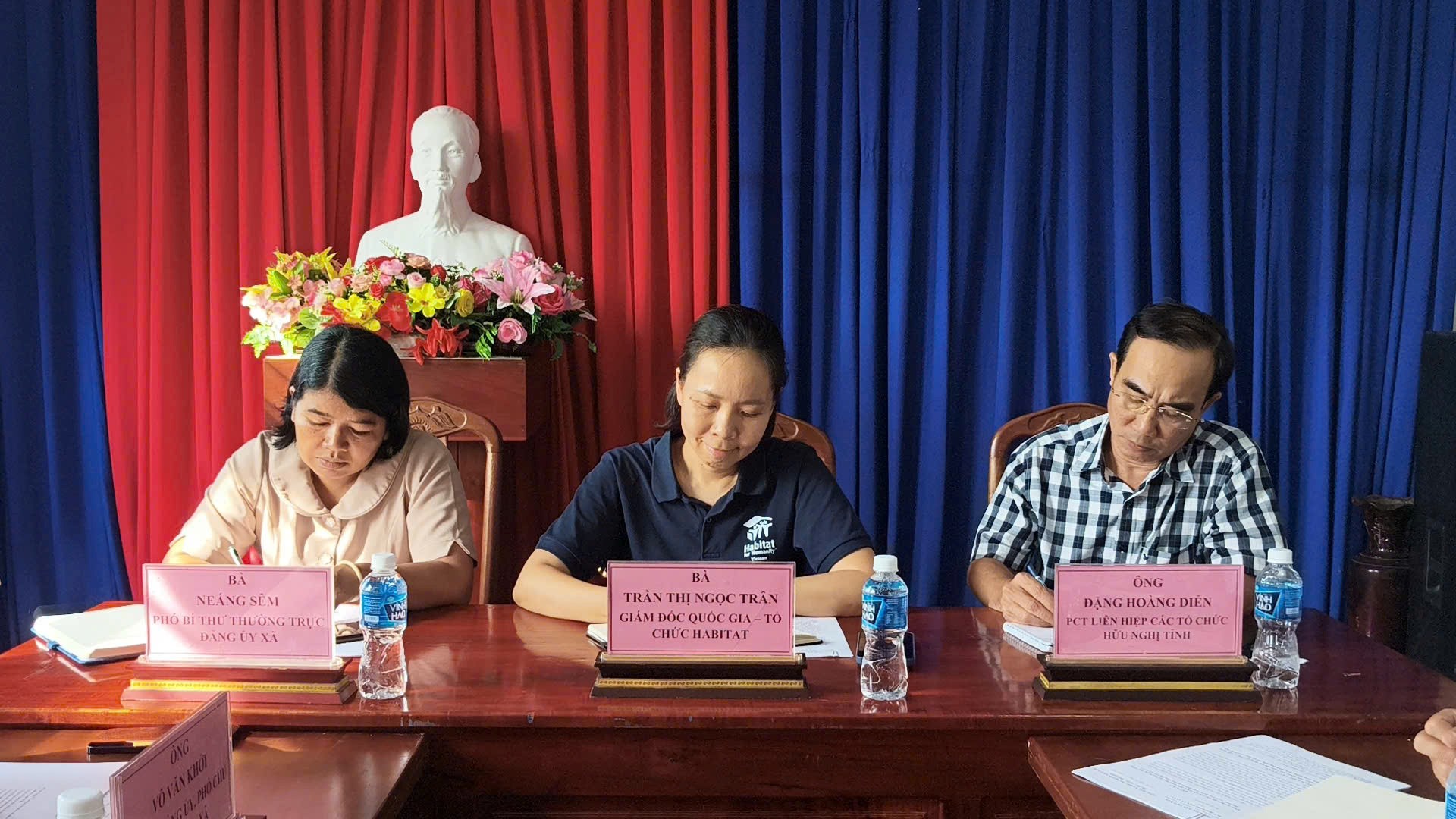 Tại đây, địa phương được nghe Bà Trần Thị Ngọt Trân, Giám đốc Quốc gia Tổ chức Habitat Việt Nam tóm lượt về mục đích, ý nghĩa của buổi khảo sát nhằm chia sẽ định hướng chiến lược chương trình từ 2026 - 2028 của Tổ chức Habitat Việt Nam. Khảo sát nhằm trao đổi và xác định nhu cầu, lĩnh vực ưu tiên của địa phương liên quan đến nhà ở, nước sạch và vệ sinh, năng lượng sạch, thích ứng biến đổi khí hậu và sinh kế bền vững.