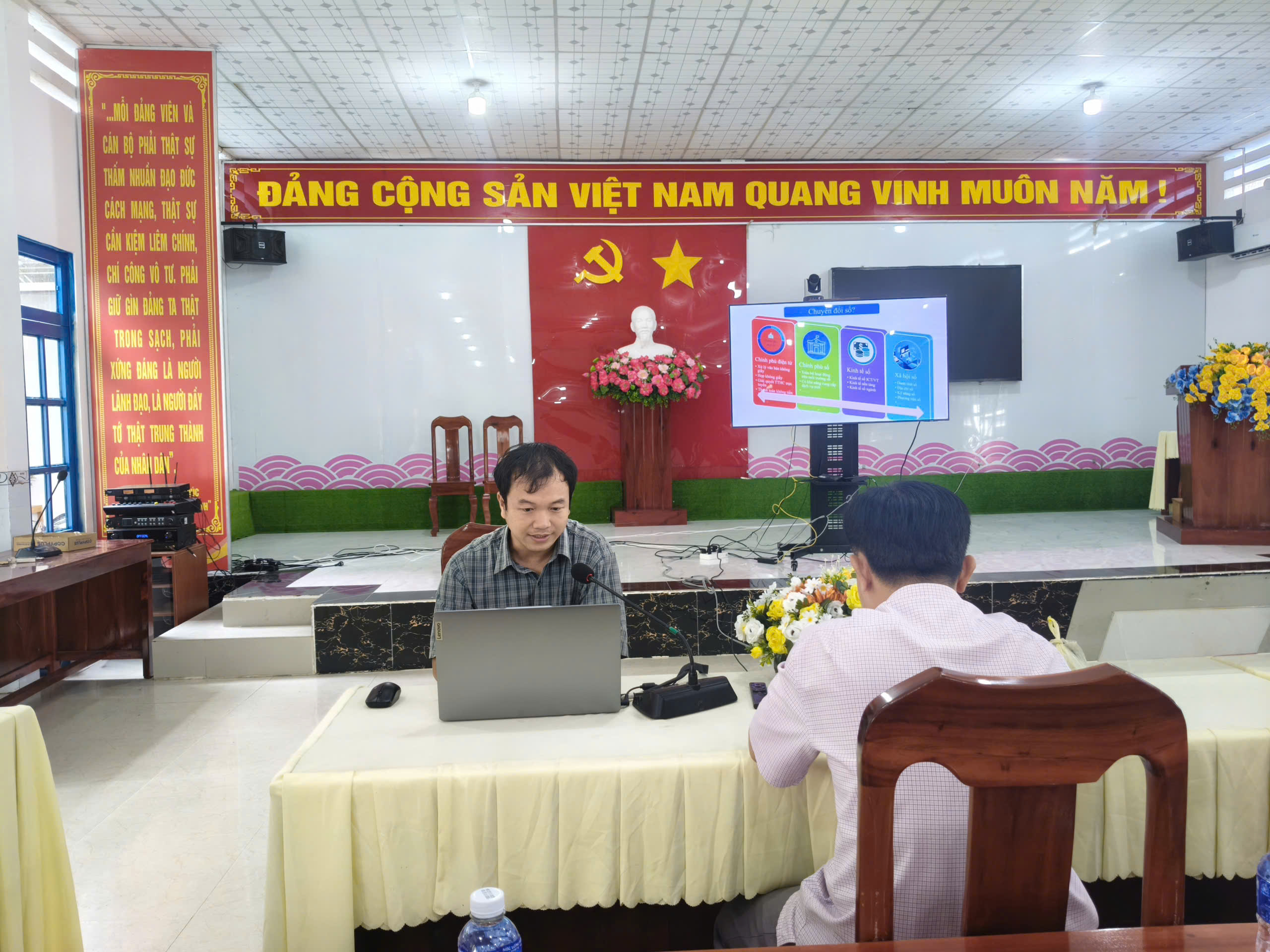 Tại Lớp tập huấn các đại biểu được nghe chuyên viên Công nghệ thông tin của xã giới thiệu tổng quan về chuyển đổi số, một số kiến thức kỹ năng về chuyển đổi số. Hướng dẫn Sử dụng dịch vụ công trực tuyến (cổng dịch vụ công của tỉnh, cổng dịch vụ công quốc gia), thanh toán không dùng tiền mặt; Cài đặt, sử dụng ứng dụng công dân số An Giang, tài khoản định danh điện tử mức 2 (VNeID), ứng dụng hồ sơ sức khỏe điện tử và một số ứng dụng phổ biến (chữ ký số, ví tiền điện tử,...); Khai thác các sàn thương mại điện tử phổ biến; khai thác thông tin trên các cổng/trang thông tin điện tử và hướng dẫn rà soát, cập nhật các văn bản pháp luật, ứng dụng công nghệ thông tin, chuyển đổi số trong tổ chức triển khai thực hiện Chương trình mục tiêu quốc gia phát triển kinh tế - xã hội vùng đồng bào dân tộc thiểu số và miền núi giai đoạn 2021 – 2030.