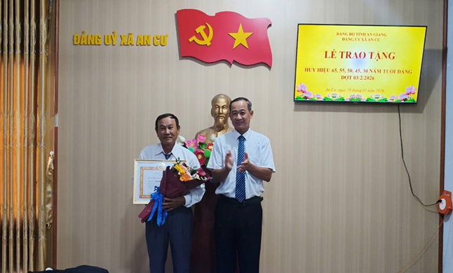 Trong đợt trao Huy hiệu Đảng lần này, Đảng bộ xã An Cư vinh dự có 10 đảng viên được trao tặng Huy hiệu Đảng. Trong đó trao Huy hiệu 65 năm tuổi Đảng 01 đảng viên, 55 năm tuổi Đảng 01 đảng viên; 50 năm tuổi Đảng 01 đảng viên, 45 năm tuổi Đảng 01 đảng viên và 06 đảng viên nhận Huy hiệu 30 năm tuổi Đảng.