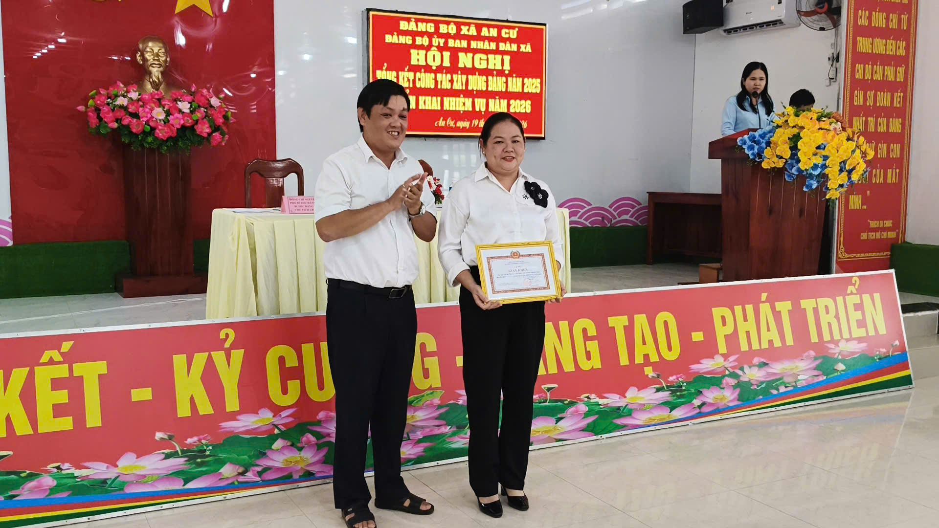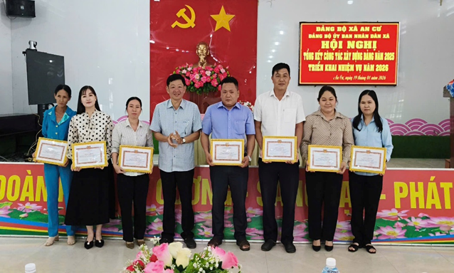 Dịp này, Đảng uỷ, UBND xã An Cư đã khen thưởng cho 1 tập thể và 7 cá nhân có thành tích “Hoàn thành xuất sắc nhiệm vụ” năm 2025.