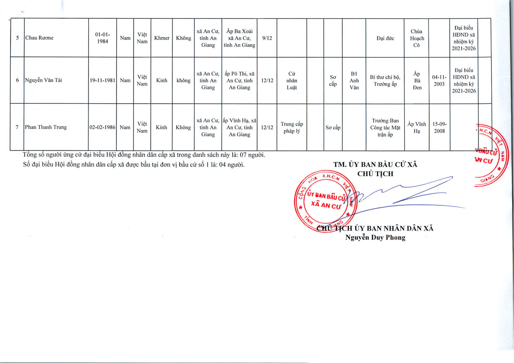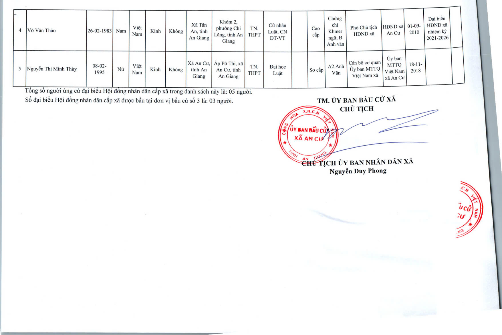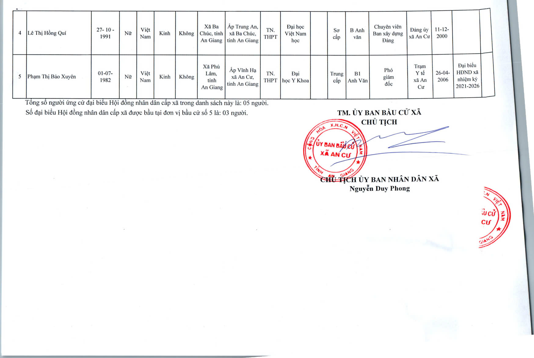 DANH SACH CHÍNH THỨC NGƯỜI ỨNG CỬ ĐẠI BIỂU HỘI ĐỒNG NHÂN DÂN XÃ AN CƯ KHOÁ XIII, NHIỆM KỲ 2026 - 2031