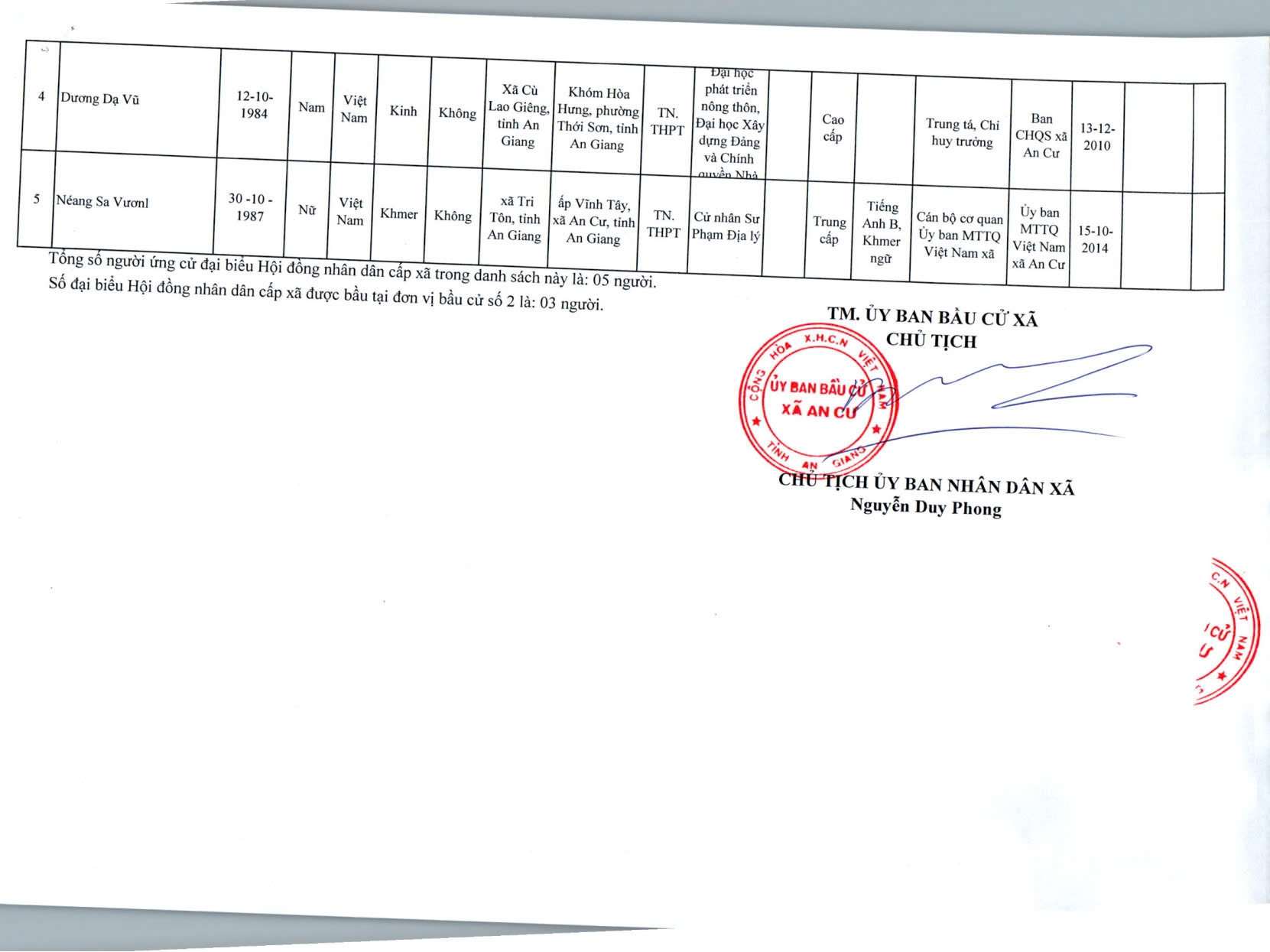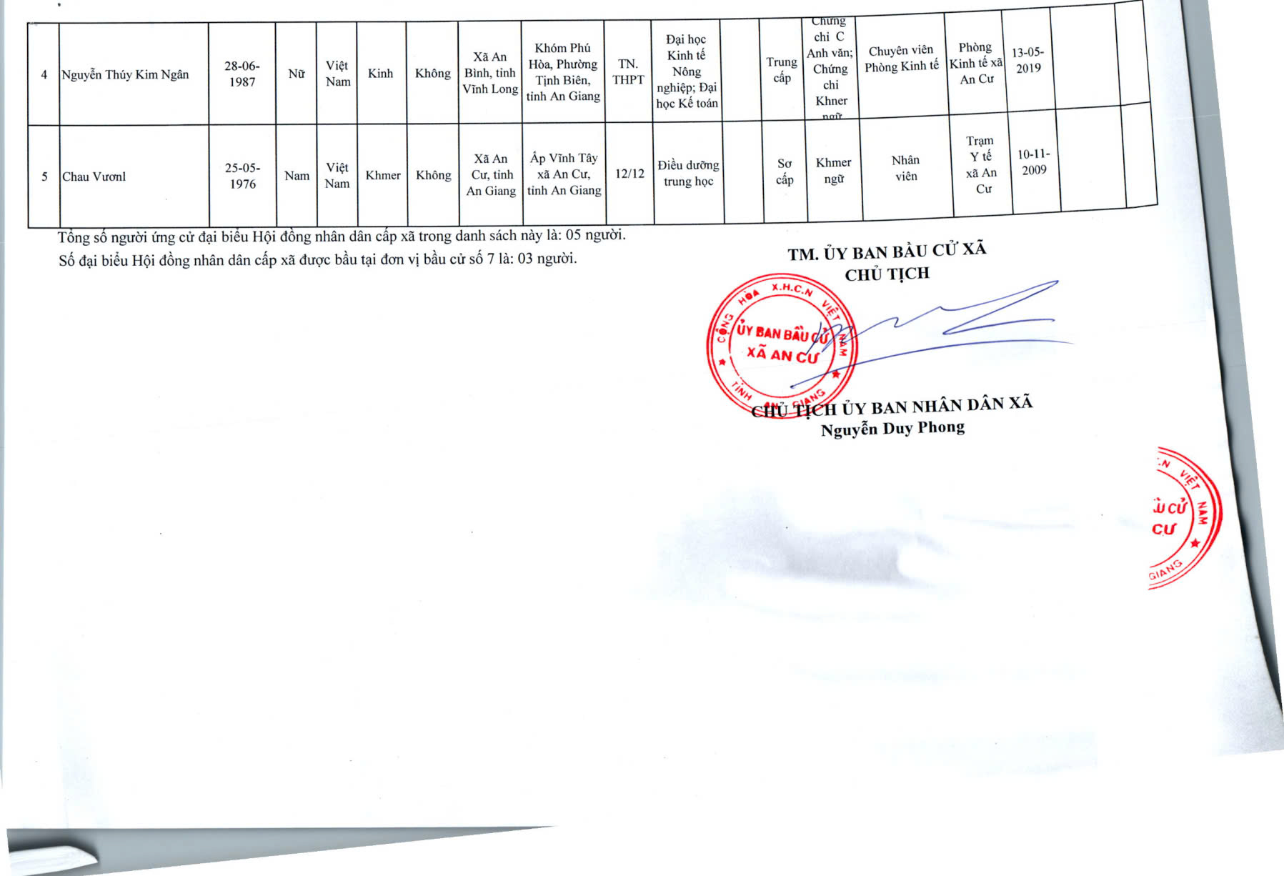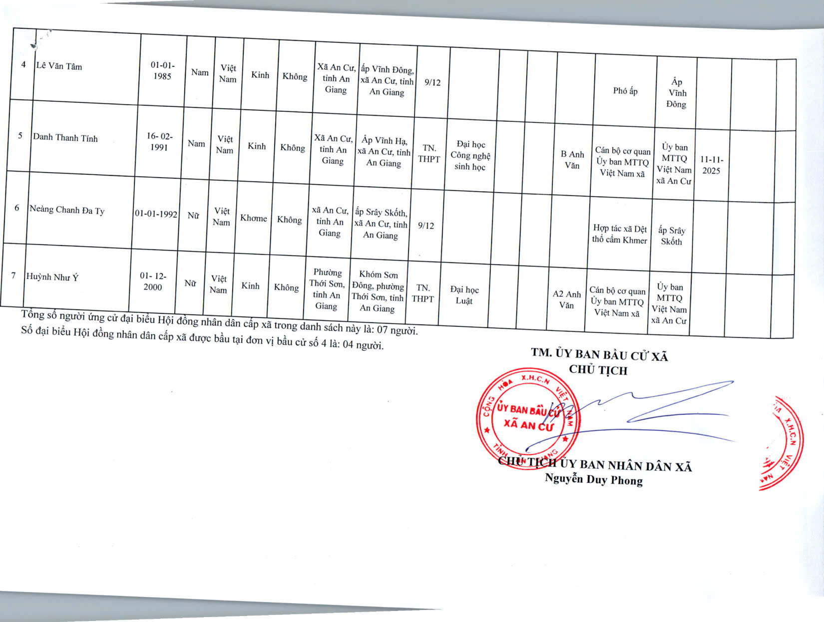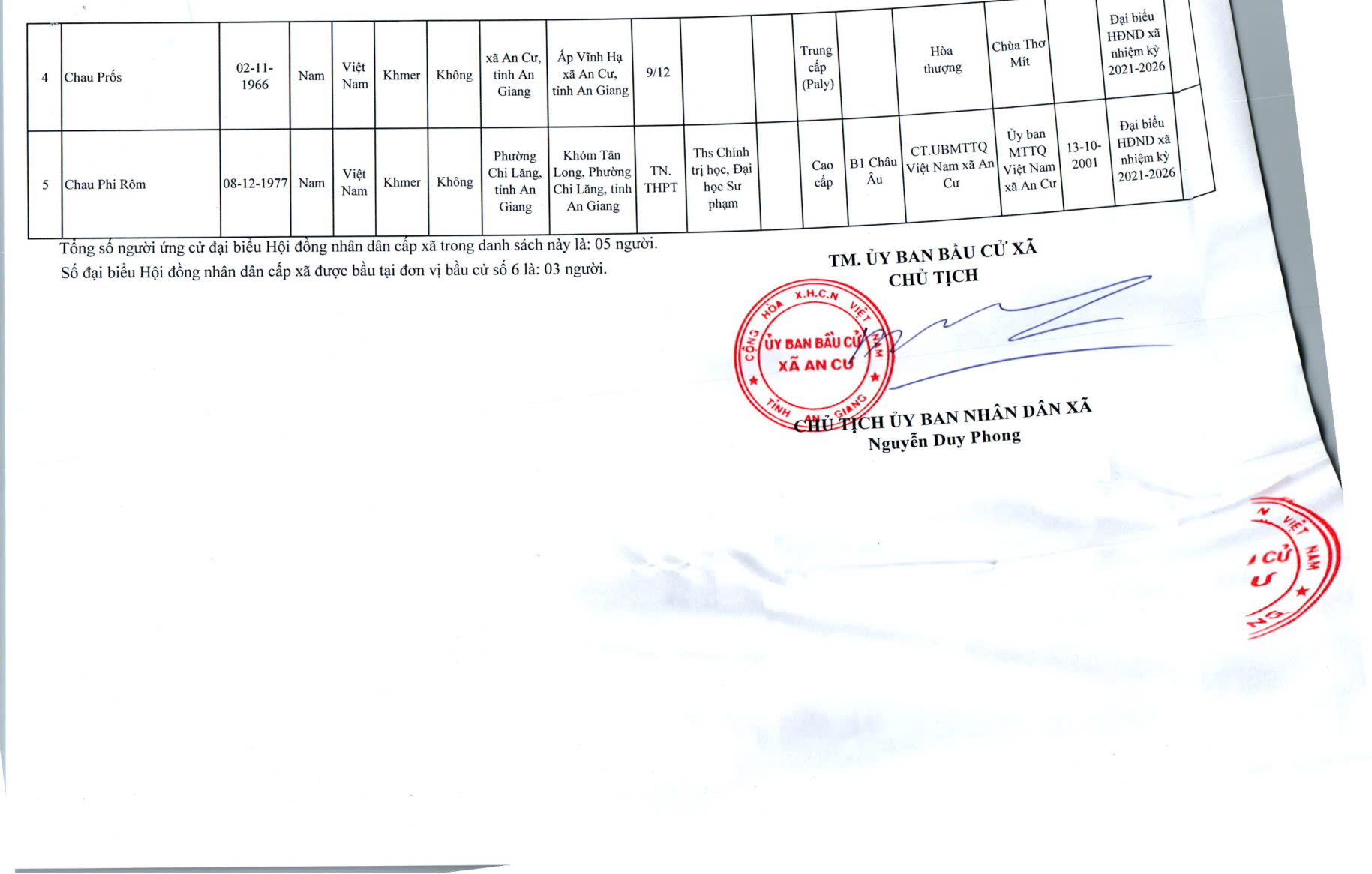 DANH SACH CHÍNH THỨC NGƯỜI ỨNG CỬ ĐẠI BIỂU HỘI ĐỒNG NHÂN DÂN XÃ AN CƯ KHOÁ XIII, NHIỆM KỲ 2026 - 2031
