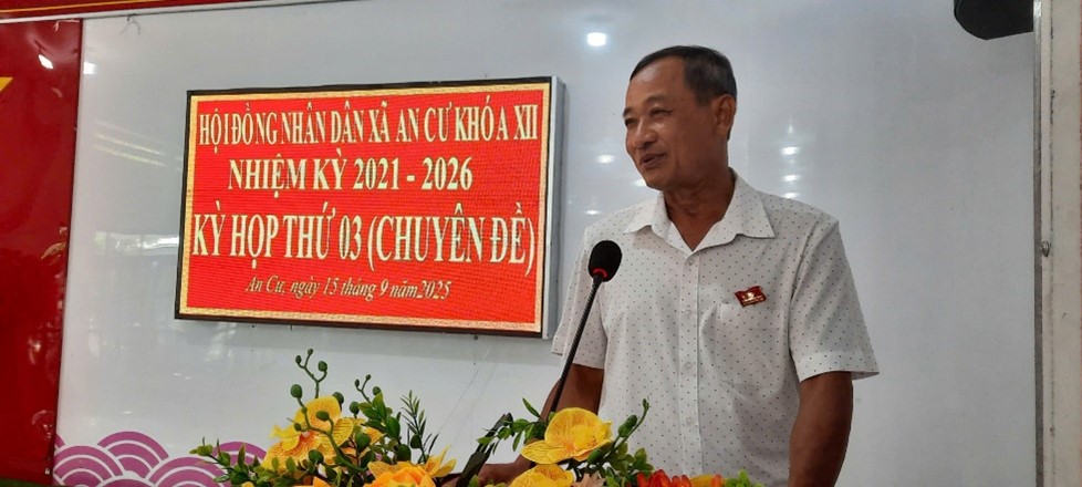Bí thư Đảng ủy, Chủ tịch Hội đồng nhân dân xã An Cư phát biểu tại kỳ họp