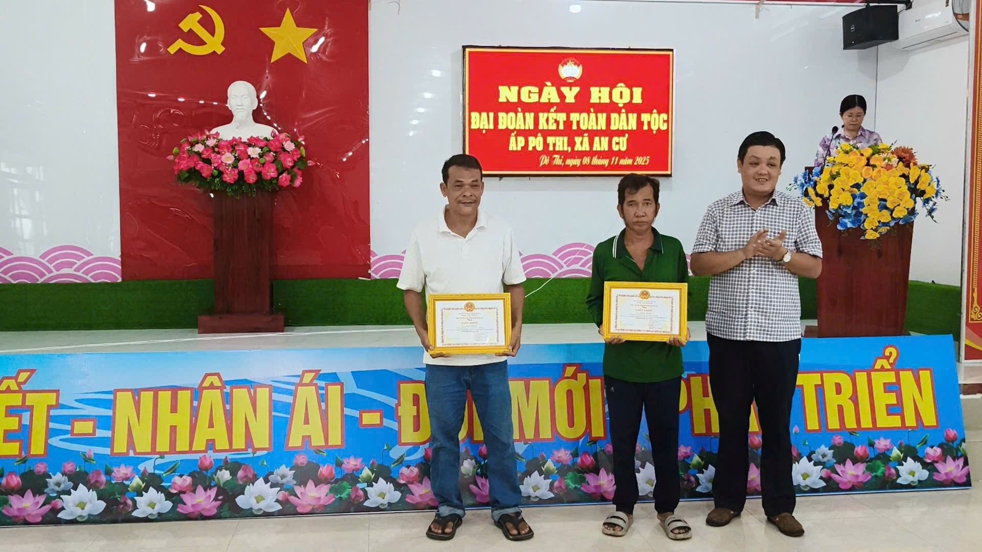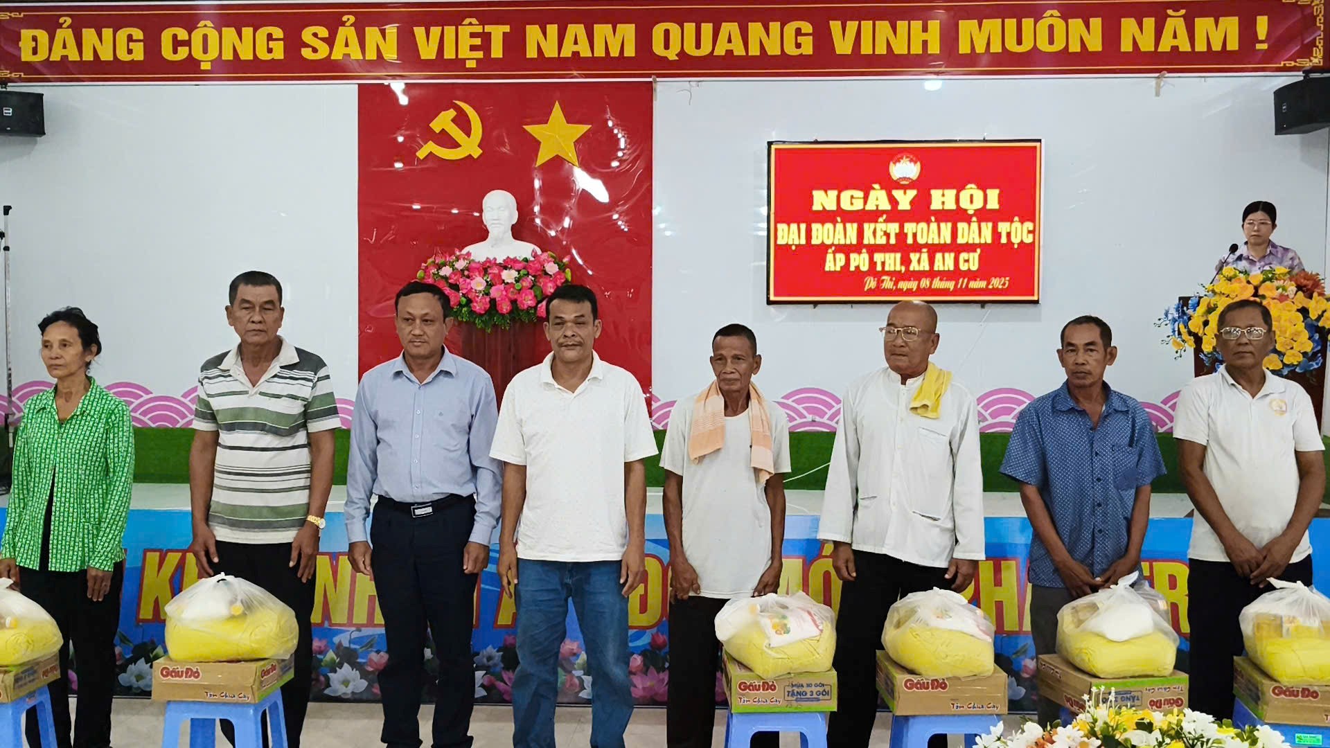 Dịp này, Ban công tác Mặt trận ấp Pô Thi đã trao giấy cảm tạ cho các mạnh thường quân đã có nhiều hoạt động xã hội từ thiện tại địa phương. Bên cạnh đó cũng trao 20 phần quà cho hộ nghèo, người già neo đơn trên địa bàn xã, tổng trị giá trên 6 triệu đồng. Đồng thời, khen thưởng cho 02 cá nhân có thành tích “Người tốt, việc tốt” trong thực hiện phong trào “Toàn dân đoàn kết xây dựng đời sống văn hóa” năm 2025.