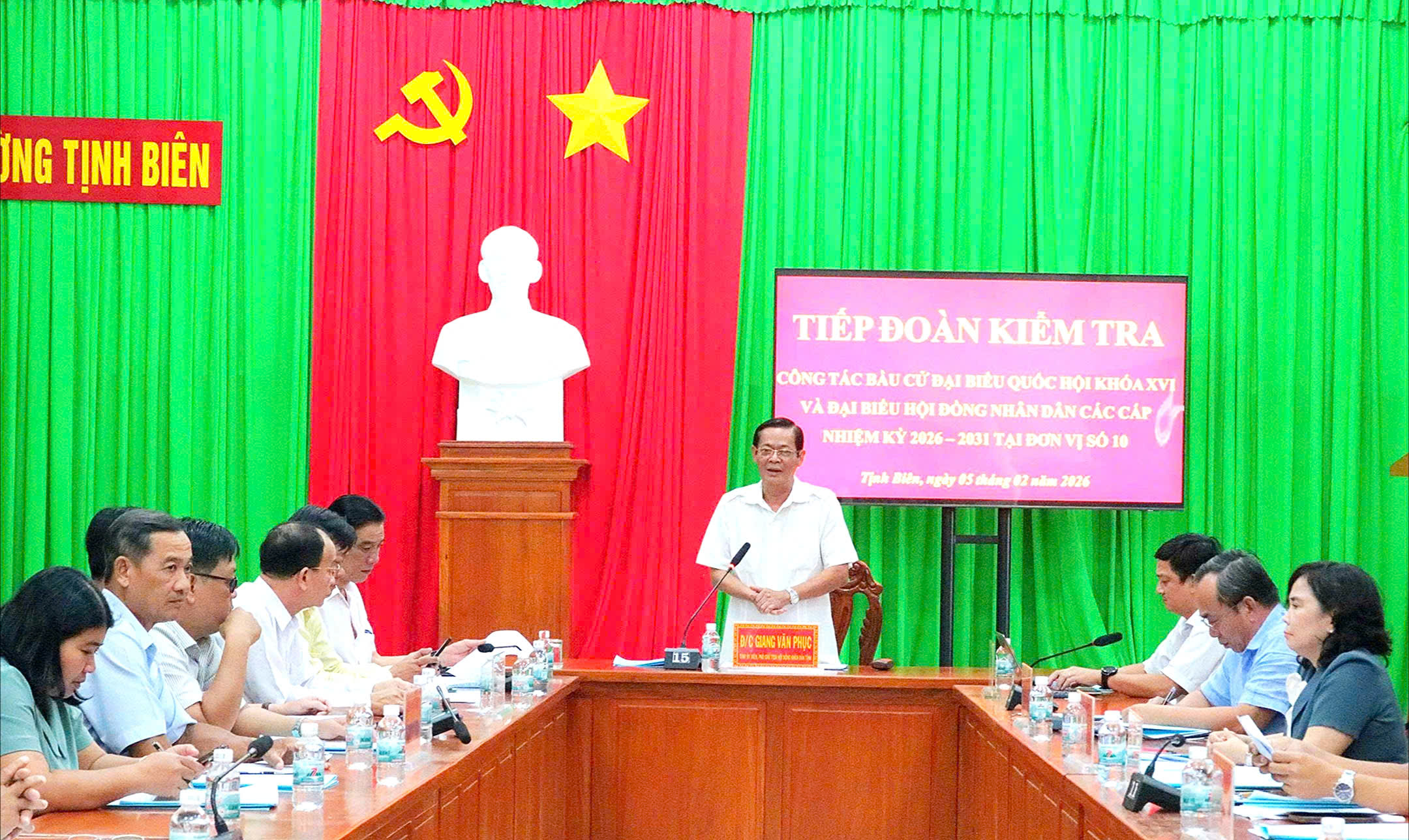 Ngày 5/2, Phó Chủ tịch HĐND tỉnh An Giang Giang Văn Phục dẫn đầu đoàn kiểm tra của Ủy ban Bầu cử tỉnh An Giang đã đến kiểm tra công tác bầu cử đại biểu Quốc hội khóa XVI và đại biểu HĐND các cấp nhiệm kỳ 2026 – 2031 các phường Tịnh Biên, Thới Sơn và xã An Cư.