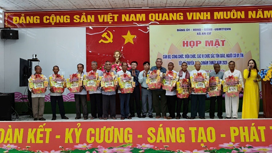 Dịp này, Đảng ủy, HĐND, UBND, UBMTTQVN xã An Cư trao tặng những phần quà nhằm ghi nhận những đóng góp tích cực của cán bộ, công chức, viên chức, người có uy tín và Sư cả, các vị chức sắc đã có những đóng góp quan trọng trong xây dựng nông thôn mới, giữ gìn an ninh trật tự và phát huy bản sắc văn hóa dân tộc, xây dựng quê hương An Cư ngày thêm đổi mới. Qua đó, gửi lời chúc đón Tết cổ truyền đồng bào dân tộc Khmer vui tươi, mạnh khỏe, an lành, đạt nhiều thắng lợi mới./.