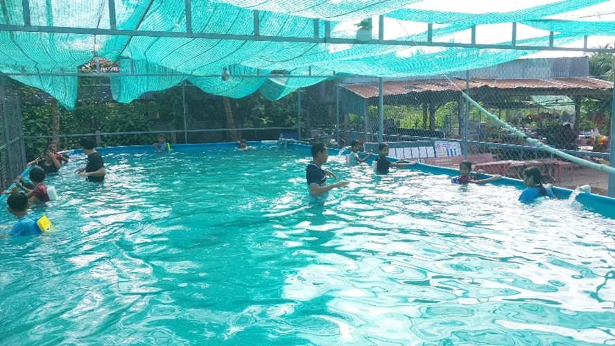 Tại các lớp học, học sinh được hướng dẫn kỹ năng bơi cơ bản theo tiêu chuẩn hiện hành (bơi liên tục ít nhất 25m), giữ nổi ít nhất 90 giây và kỹ năng an toàn trong môi trường nước; cách xử lý khi gặp tình huống nguy hiểm dưới nước...
